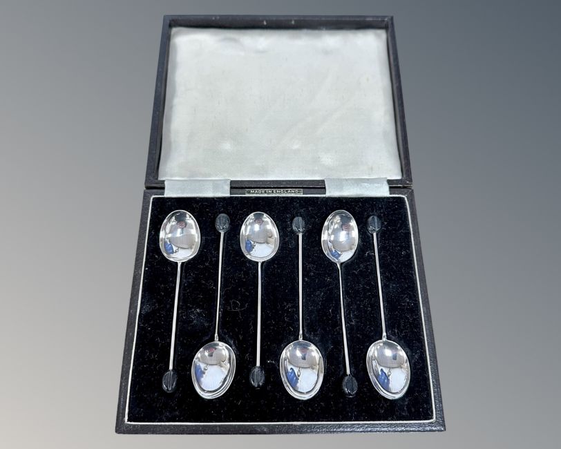 A set of six silver coffee spoons.