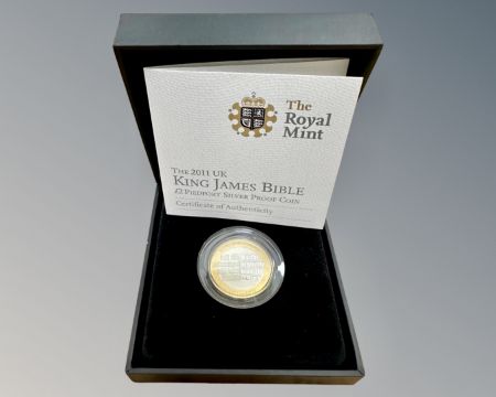 The Royal Mint : The 2011 King James Bible piedfort silver proof £2 coin, 24g.
