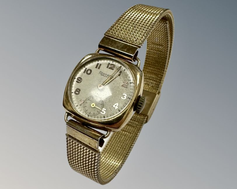 An early 20th century lady's Rotary wrist watch, 9ct yellow gold backed on plated strap.