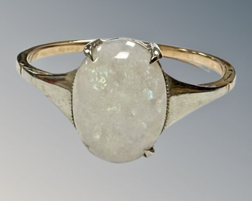 A 9ct white opal ring, L 1/2, 1.3g.