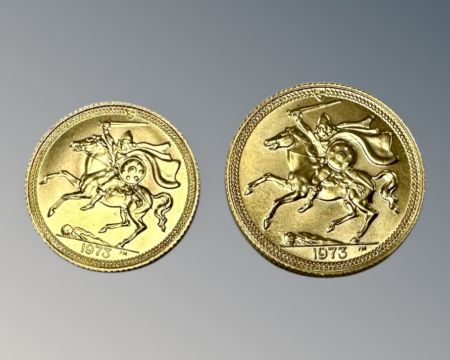 A full gold sovereign together with a gold Isle of Man 1973 half sovereign (2)