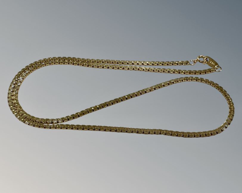 A 14ct yellow gold flat link necklace, length 45 cm, 8g.