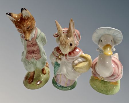 Three large Beswick Beatrix Potter limited edition figures - Jermima Puddle Duck no. 787 of 1947, Foxy Whiskered Gentleman no. 310 or 1947 and Miss Rabbit no. 1607 of 1947