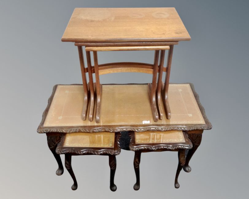 A nest of three 20th century teak G plan tables together with a further nest of three tables.