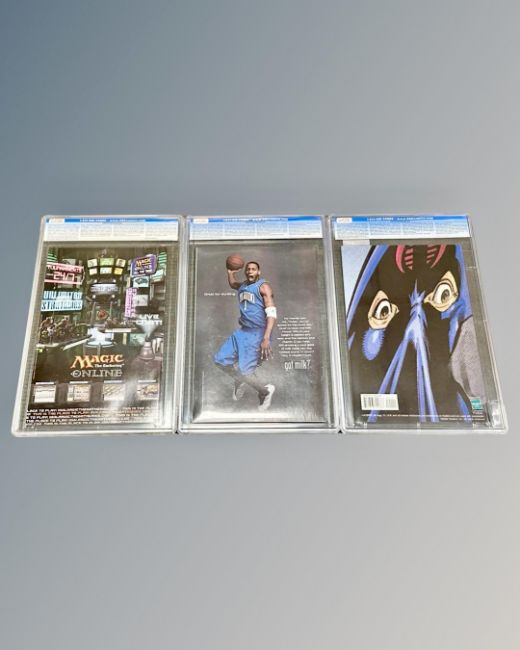 Three CGC Universal Grade comics comprising : Image Comics G.I. Joe Front Line #1 slabbed and graded 9.9, Marvel Comics Astonishing X-Men #1 slabbed and graded 9.4 and DC/Vertigo Comics Swamp Thing #1 slabbed and graded 9.8. (3)