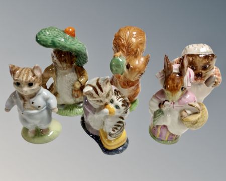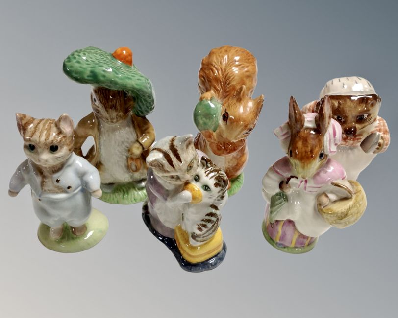 Six Beswick Beatrix Potter figures - Benjamin Bunny, Squirrel Nutkin, Tom Kitten etc