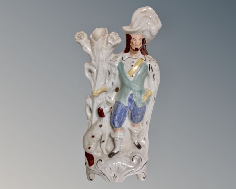 A 19th century Staffordshire figure of a gentleman and his dog.