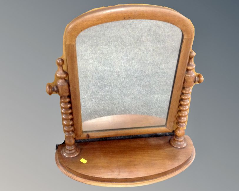 A Victorian mahogany dressing table mirror on bobbin supports.