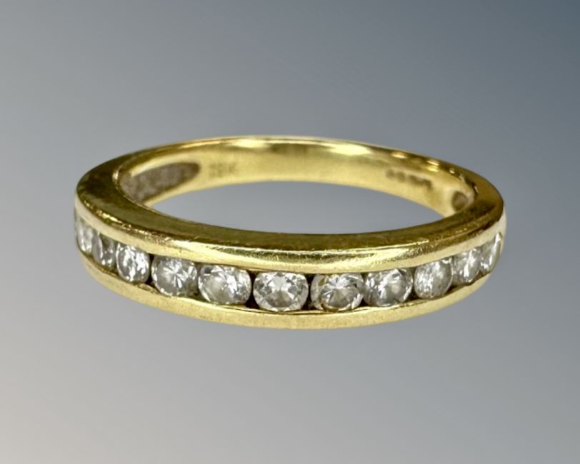An 18ct gold diamond half eternity ring, size J½.