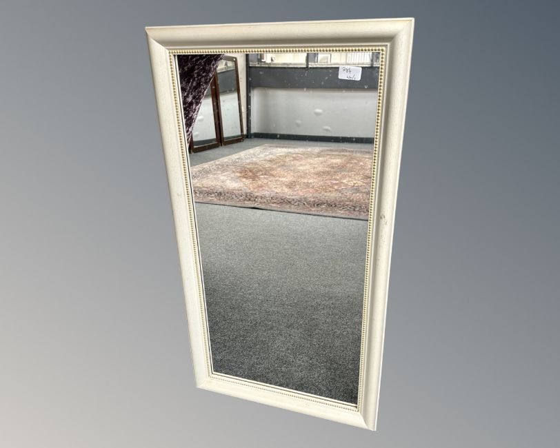 A contemporary cream mirror, 49cm by 89cm.