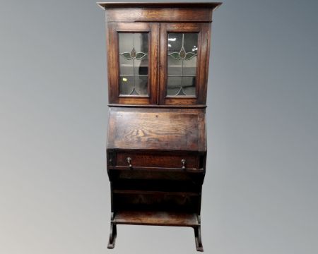 An Edwardian Arts & Crafts oak lady's bureau bookcase, width 79 cm