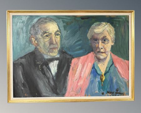Continental school : Portrait study of an elderly couple, oil on board, 74cm by 52cm.
