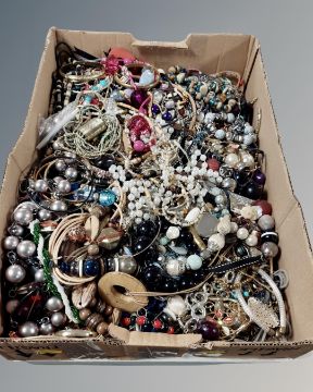 A box containing a large quantity of assorted costume jewellery, bead necklaces etc.