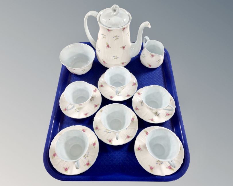 A tray containing a 15 piece Shelley pink rose patterned bone china tea service.