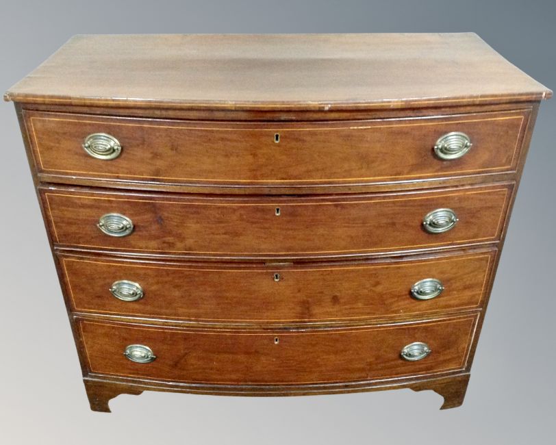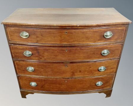 A late George III inlaid mahogany bow fronted four drawer chest.