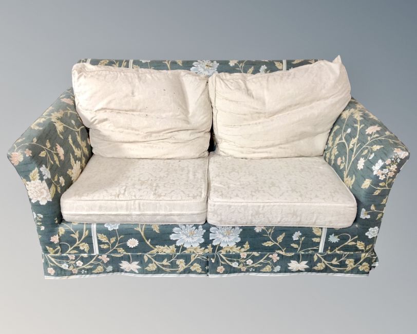 A two seater bed settee upholstered in a floral fabric.