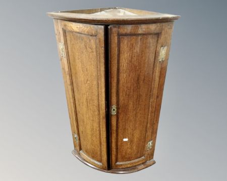 A George III oak double panel door hanging corner cabinet.
