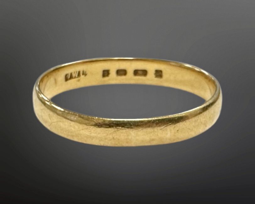 A 22ct yellow gold wedding band, 2.5g, size P.