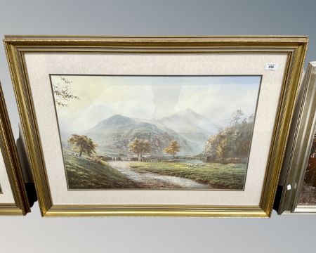 After Rex Preston : Sheep by a hillside, colour print, 73cm by 50cm.