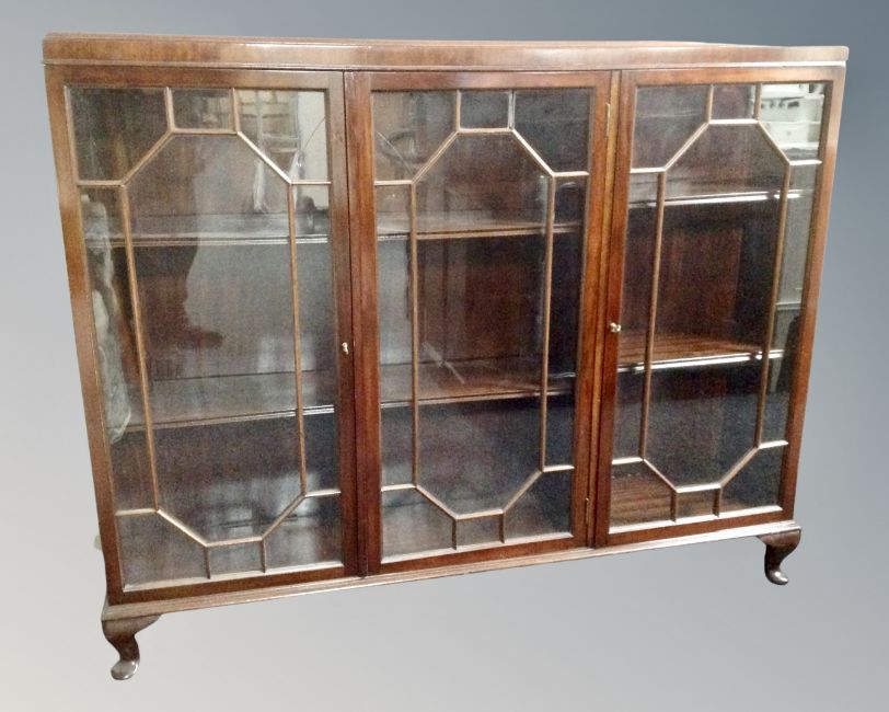 A 20th century mahogany triple door bookcase with astral glazed doors (a/f)