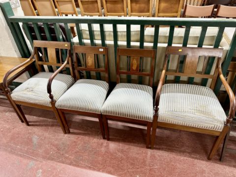 A set of four late 19th century inlaid mahogany drawing room chairs.