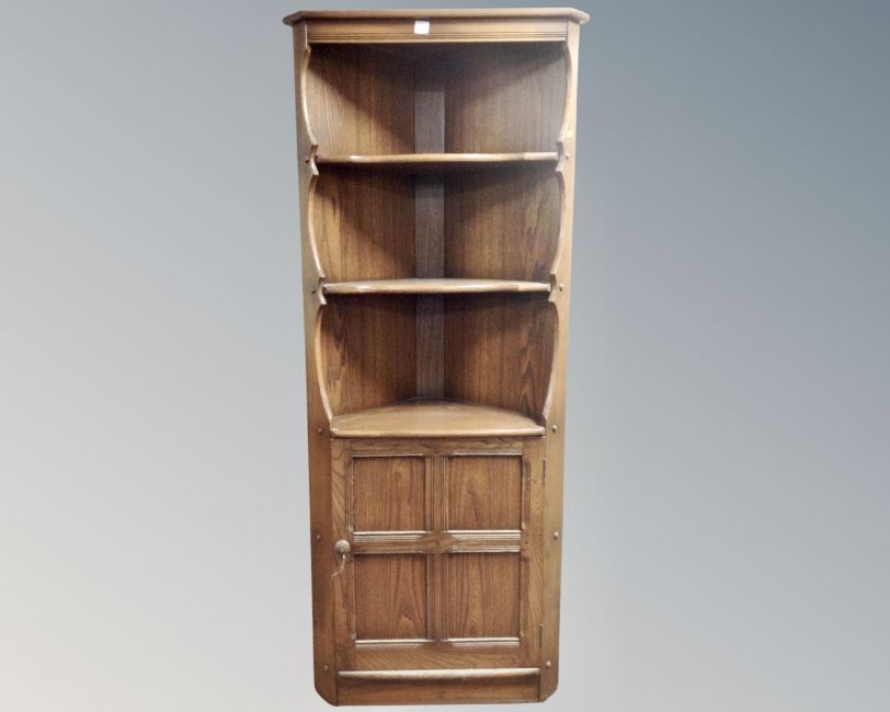 An Ercol stained elm corner cabinet.