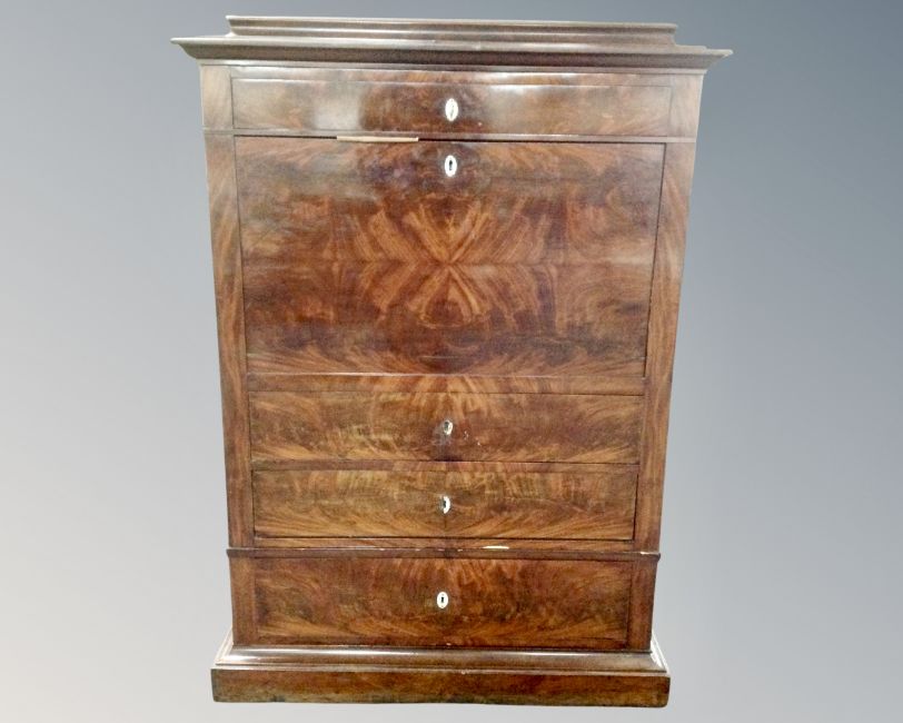 A Biedermeier mahogany fall front secretaire cabinet. (width 102cm)