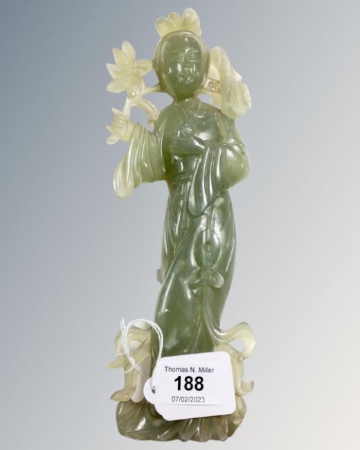 A large carved jade figure depicting a Geisha, height 26.5 cm.