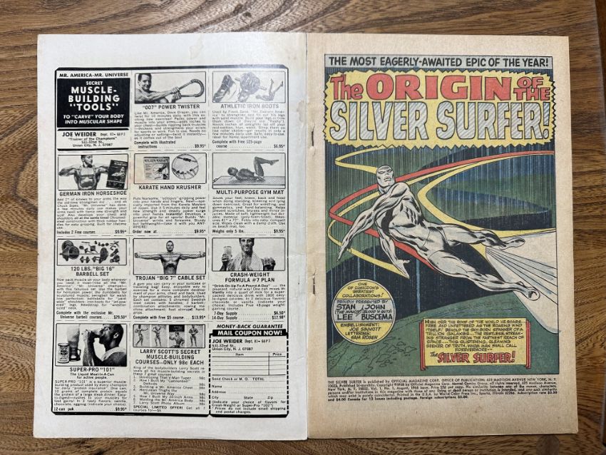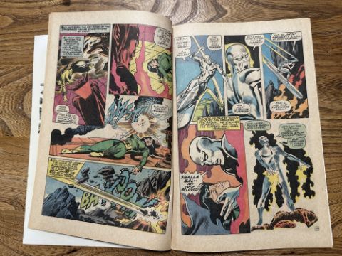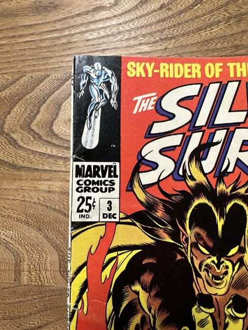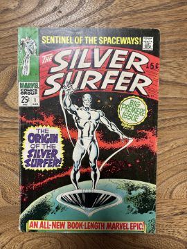 A group of vintage Marvel The Silver Surfer comics including The Silver Surfer issue #1 and several other early issues, in plastic covers.