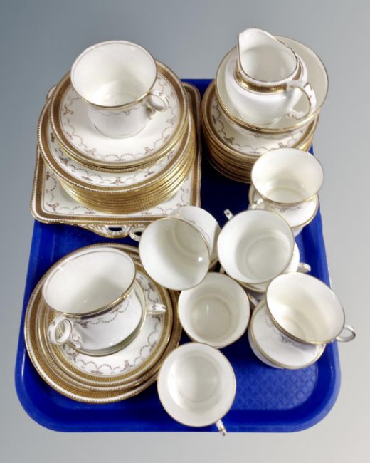A tray of forty three pieces of Fenton Milo gilt porcelain tea china together with a similar milk jug