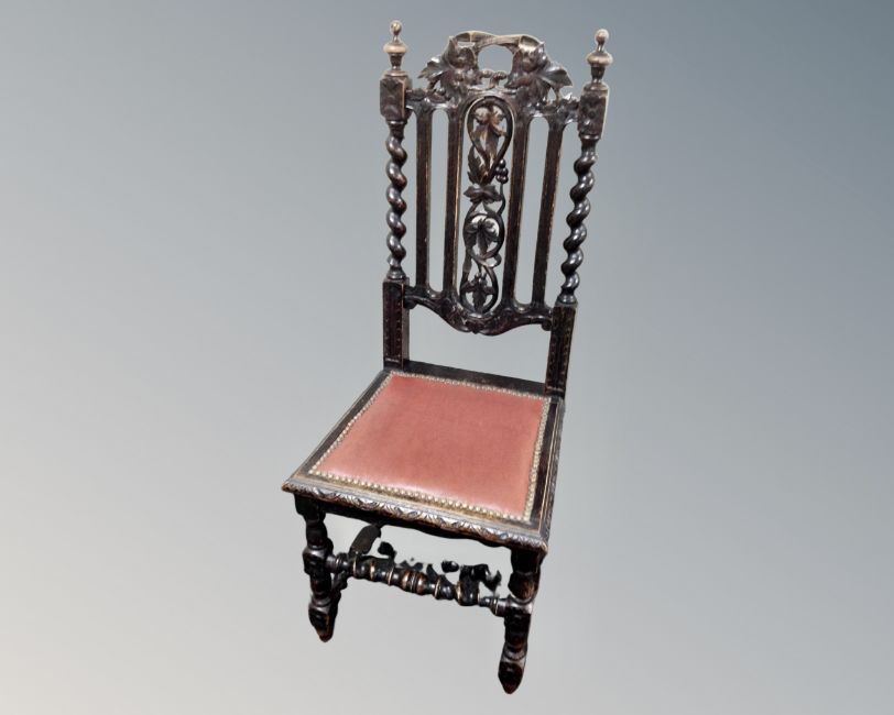 An Edwardian oak hall chair together with a further 19th century carved and stained oak hall chair.