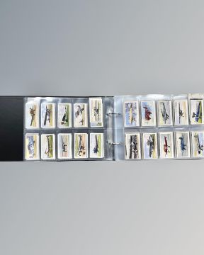 An album of cigarette cards : John Player - Uniforms of the Territorial Army, John Player - Aeroplanes (Civil), Nicholas Sarony - Links with the Past, Wills - Old English Garden Flowers, Cavanders Ltd. - Camera Studies, Wills - Wonders of the Past, Wills - Garden Flowers, The Wizard - The World's Best Cricketers, De Reszke - Real Photographs, John Player - Cricketers 1938, Wills - Railway Equipment, Wills - The Reign of H.M. King George V, John Player - Hints on Association Football, John Player - Cries of London, John Player - Struggle for Existance, Wills - Recruiting Posters, etc, etc.