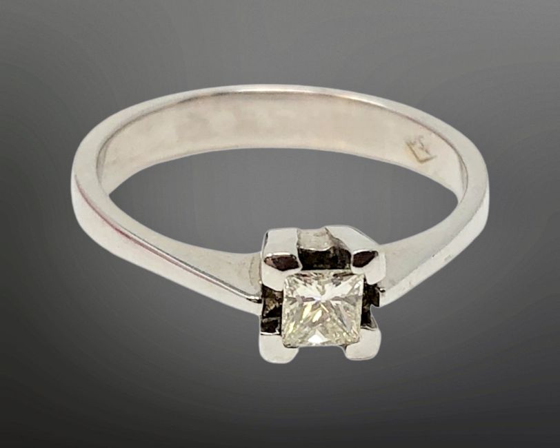 An 18ct white gold princess cut solitaire diamond ring, size M