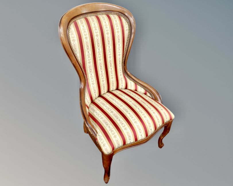 A Victorian style lady's chair upholstered in a classical fabric.