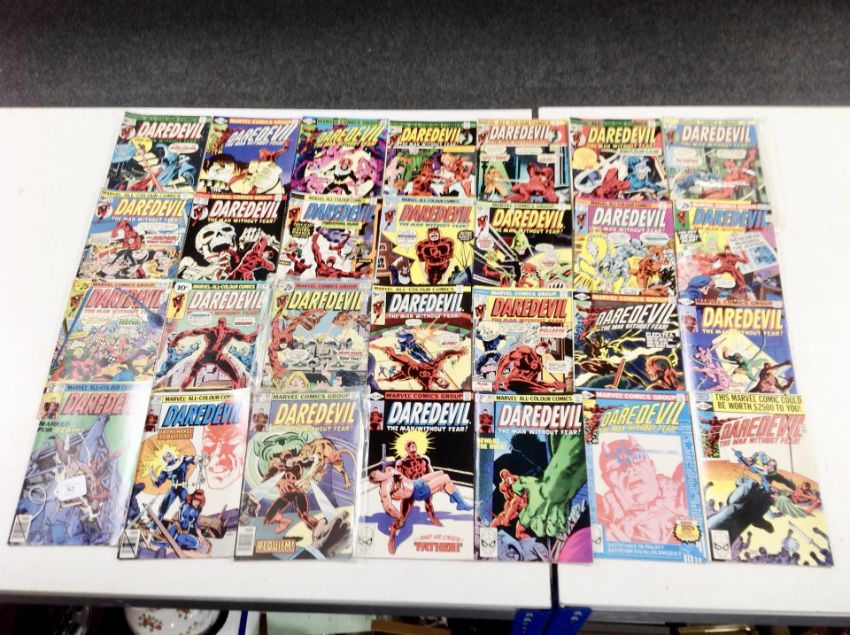 Marvel Comics : Daredevil, seventy one issues to include 12 cent issues, 6, 22, king size annual, 4, 1976. (71)