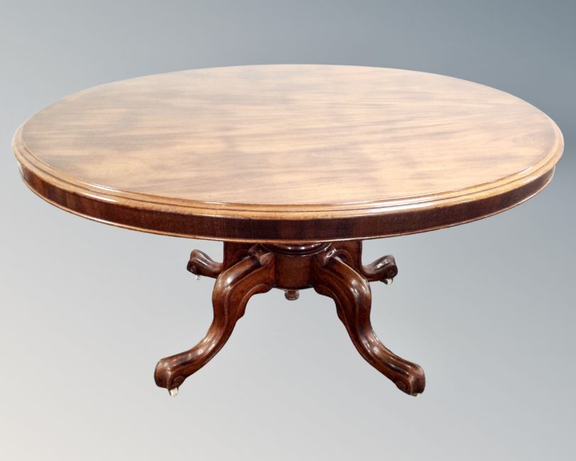 A Victorian oval mahogany tilt topped breakfast table