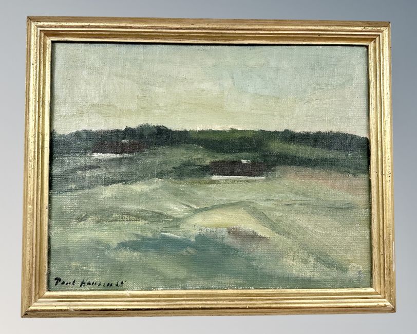 Continental School : Farm landscape, oil on canvas, indistinctly signed, 43cm by 33cm.