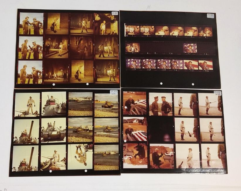 Photos of Marilyn Monroe, Frank Sinatra, Rita Hayworth, Carole Lombard and contact sheet prints of the 1970 film 'Patton'.