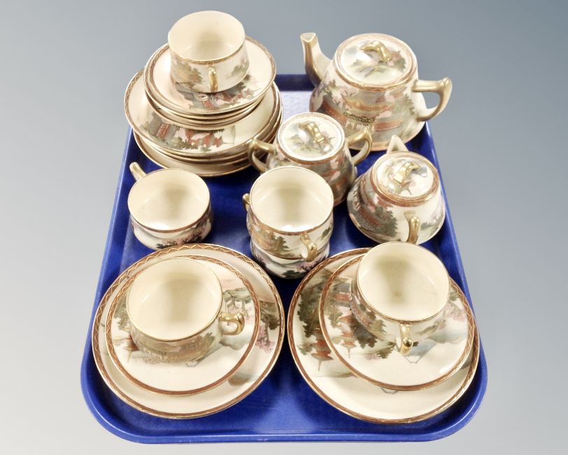 A twenty-one piece Japanese Satsuma earthenware tea service, signed