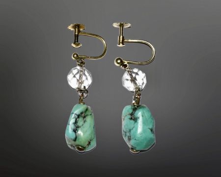 A pair of 9ct gold turquoise and crystal earrings with screw backs.