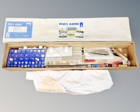 A Dean's Marine scale model of HMS Cossack with instructions, in original box, partially assembled.