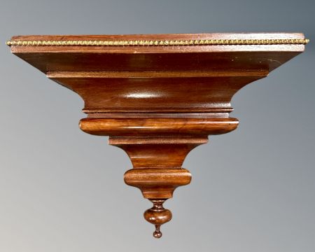 A fine mahogany-cased twin-fusee repeating verge bracket clock, signed John Taylor, London, third-quarter 18th century, the brass and silvered dial with 6¾ inch Roman chapter ring, pierced-steel hands, date aperture above 6 o' clock, ormolu spandrels, strike/silent hand above dial, the eight day movement with foliate-engraved back plate, striking on a bell, the domed architectural case with brass bow carry handle, raised on bracket feet, with winding key, 41cm by 25cm by 18cm. Together with an ogee mahogany wall bracket measuring 29.5cm wide by 21cm deep by 25cm high, with gilt beaded moulding. With some recent service history.