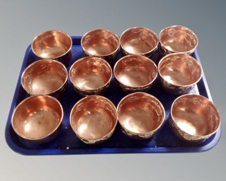 A collection of twelve Victorian embossed copper moulds.