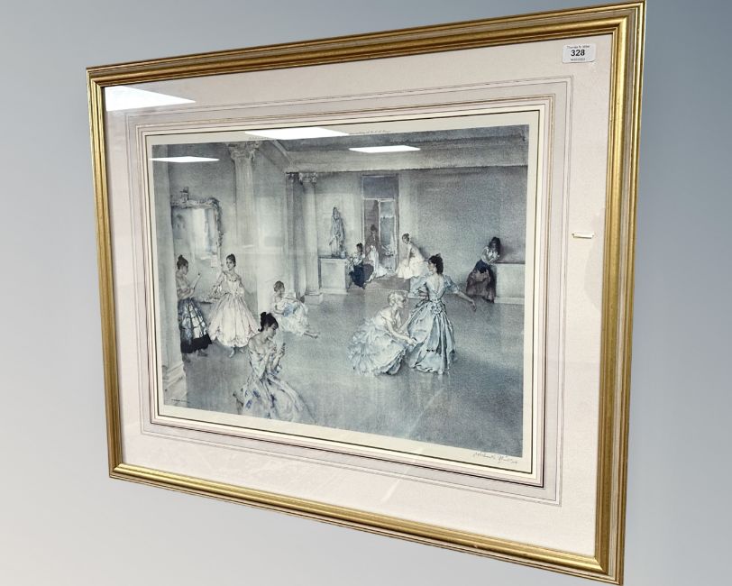 After Sir William Russell Flint (1880-1969) : Casual Assembly, reproduction in colours, signed in pencil, published by Frost & Reed Limited, 1963, 48cm x 63cm, framed.