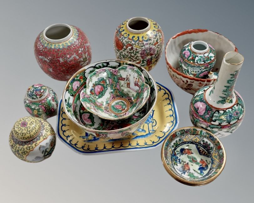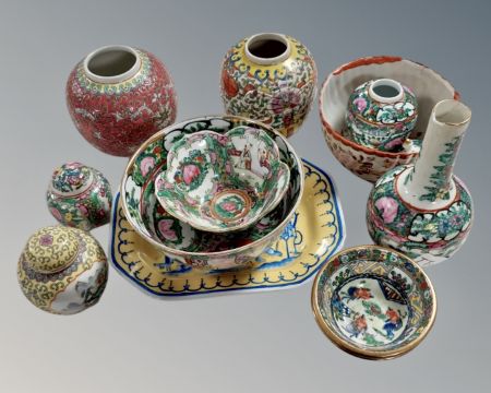 A quantity of Oriental porcelain including ginger jars, bowls, vase etc.