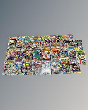 A tray of 50 Marvel comics dating from the 1970s and later, including Captain America, Machine Man, The Thing, Captain Marvel, Battlestar Galactica, Star Wars etc.