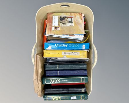 A crate containing numerous stamp albums (all empty), folders, stamp collecting reference books, price guides, etc, etc.