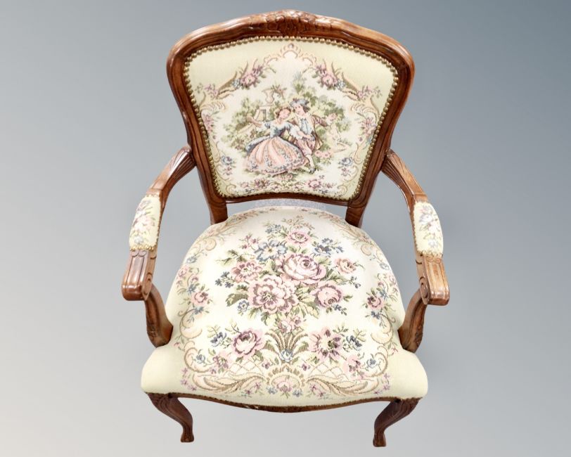 A continental carved beech framed salon armchair