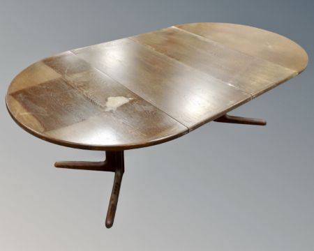 A stained oak extending dining table with two leaves, total length 220 cm