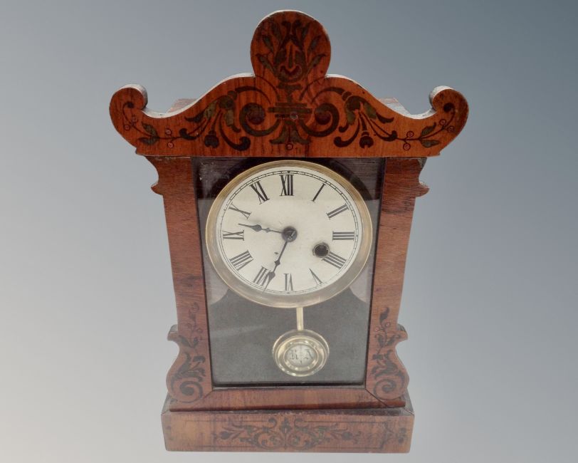 A late Victorian mantel clock with painted dial. (height 34cm)